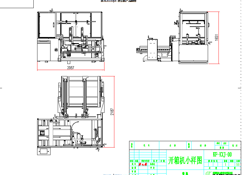 自動開箱機是整套工程設備中的前端,是設備自動將折疊成紙板箱板打開,并完成下部分膠帶粘合后成型一個紙箱。目前傳統(tǒng)的使用方式為人工對紙板進行開箱封底,使之成為一個空紙箱,人工開箱速度較慢,且工作強度較大,因此使用開箱機,不僅能夠提高整體生產效率,同時也是降低了用工數(shù)量。(詳見設備小樣圖五)。