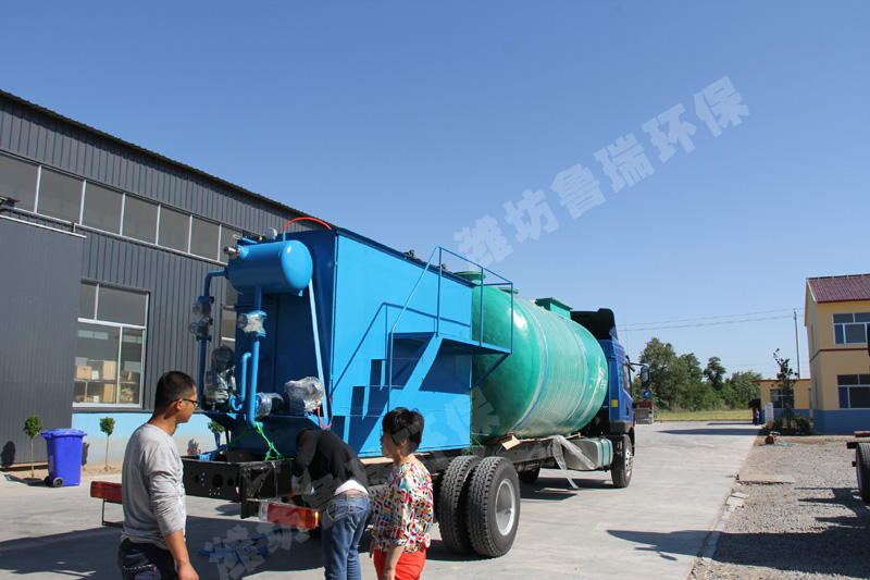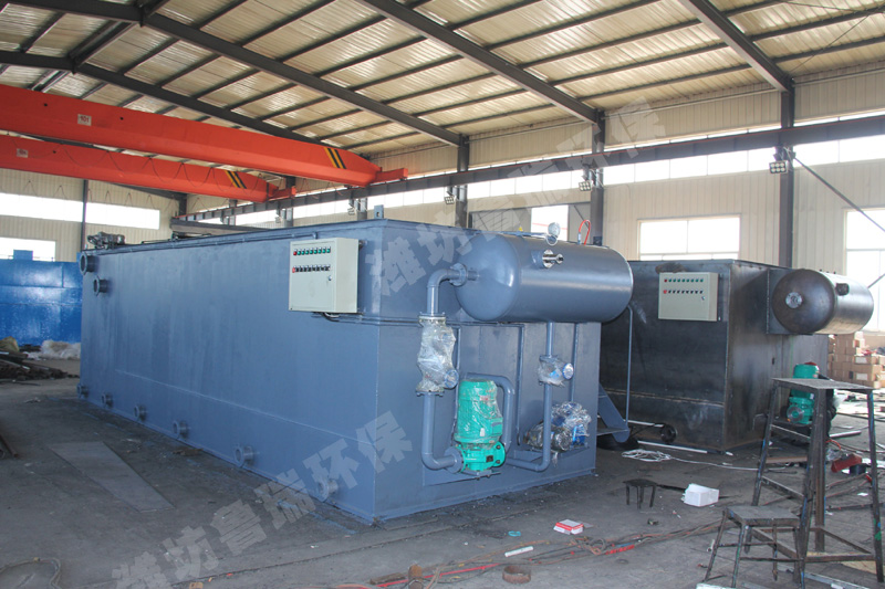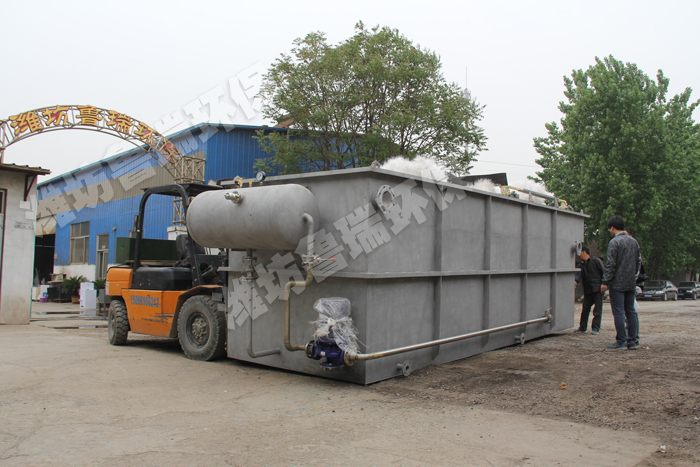 污水經絮凝反應后進入混合區,與溶氣水混合接觸。絮體與溶氣水中的小氣泡相互粘合,然后進入氣浮區,并隨小氣泡一同浮到水面,形成浮渣。下層的清水經集水器流至清水池后,一部分回流作溶氣水,剩余清水通過溢流口流出。氣浮池上面的浮渣由刮板刮至污泥池并排出。二、用途特點